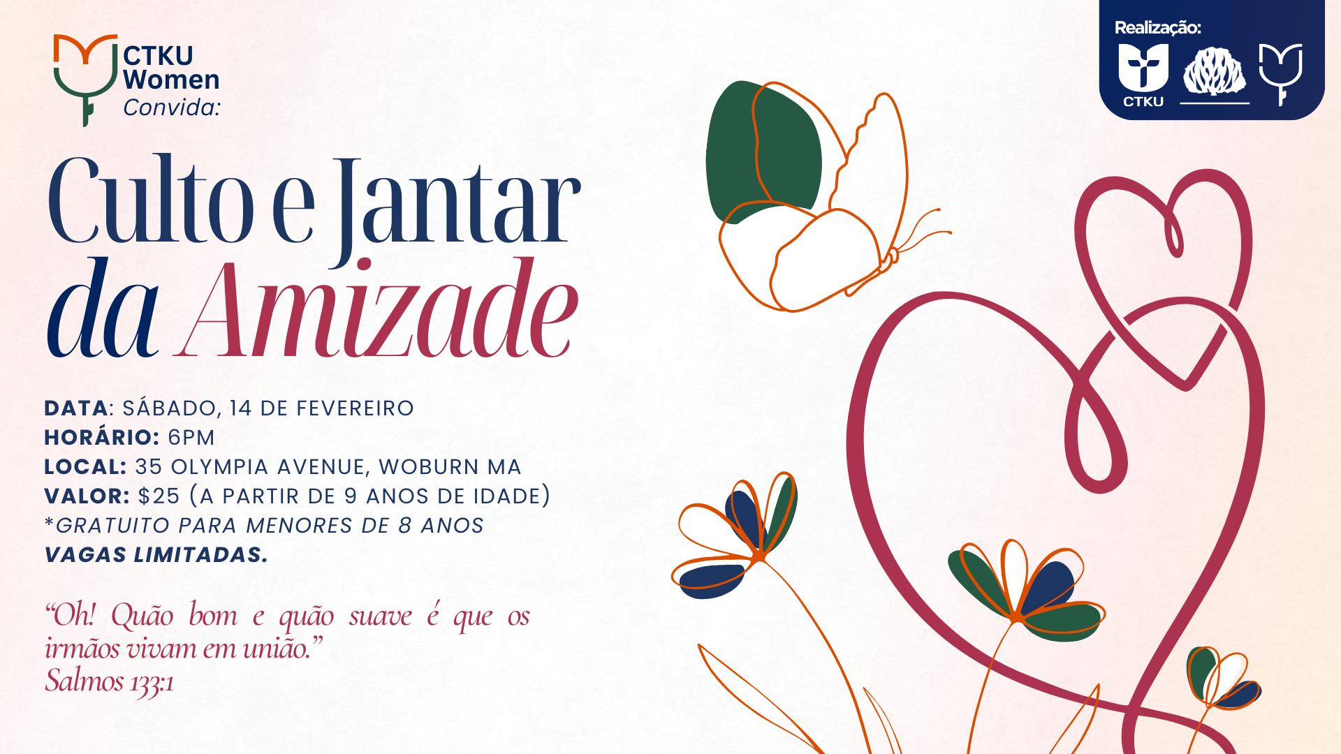 Com muita alegria, a SAF convida você e sua família para participar do nosso Culto e Jantar da Amizade. Teremos um momento especial de comunhão, alegria e fortalecimento dos laços fraternos. Inscreva-se!